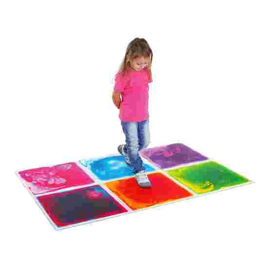 The sensory floor tiles come in a 6-piece set and are ideal for indoor use on even floors. The tiles are filled with a mixture of water and oil. When stepped on, they create wondrous, colourful patterns. Using the hands and feet to feel how the liquid moves as you apply pressure by shifting your weight is an amazing experience. The underside of the tiles features a non-slip rubberised coating that gives them a firm grip.