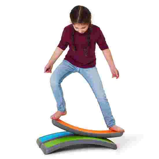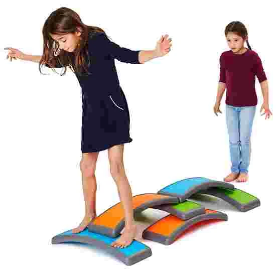 Gonge arches bring variety to children’s sports and encouraging activity. The versatile arches can be used as a bridge or seesaw. You can increase the challenge, for example, by setting up an arch as a bridge at the bottom and placing another on top of it with the curved side down. The tricky part is to lay out a Gonge arch like a seesaw and then lay another on top of it with the curve pointing upwards. Adjust the level of difficulty to suit the children’s abilities. The arches have a pleasant feel to them, so they can easily be walked on barefoot. The stable inner part is made of plastic. Soft, non-slip edging provides better grip when balancing.