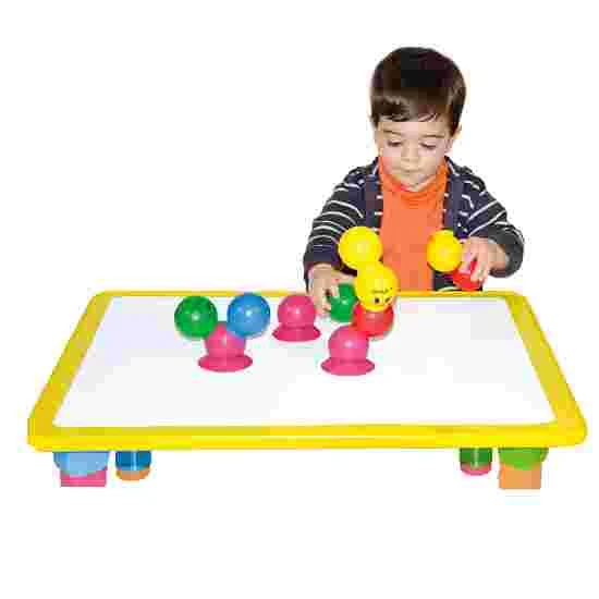 The funny Thera Bolly suction cups train dexterity and motor skills during play. Also suitable for creative building, creating funny faces as well as colour and counting games. Sticks to flat surfaces and parts of the body by applying slight pressure. Contains 28 pieces in a funny elephant-shaped bucket.