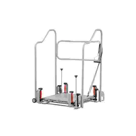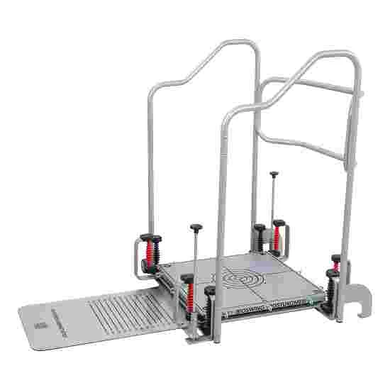 The Posturomed® 202 is a neuro-orthopaedic device with an attenuated oscillating unstable surface. This versatile piece of therapy equipment can be used for diagnosing neuro-orthopaedic conditions as well as for therapy and prevention. The surface is attached to special swinging elements that allow oscillating swaying movements. The frequency and amplitude of the oscillations can be set by the therapist. The quadrant grid with centering found on the surface guides the user during training. This marking always allows standardised tests such as the PosturoCyberneticsTest (PCT) to be carried out safely. Using a manual intervention feature, the therapist can stop the surface at any time or deflect the surface to train reactions.