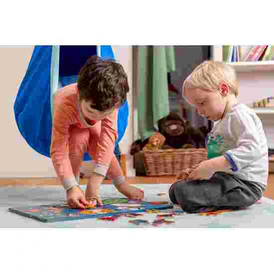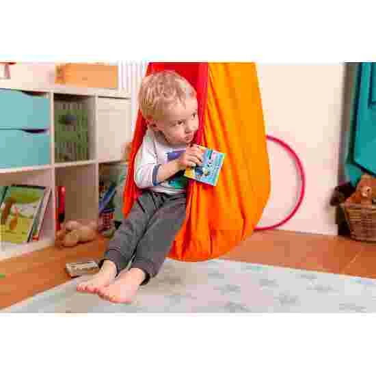 Cosy chill-out space: children love to curl up in this teardrop-shaped hanging nest, floating just above the floor. With its large, soft seat cushion (cover: 100% polyester), the nest is a quiet and safe place for them to relax. Children can also cling onto the nest and use it as a monkey swing. Cushion is removable. ø 70 cm, H: 150 cm. Pure organic cotton from controlled organic cultivation. Max. load: 80 kg.