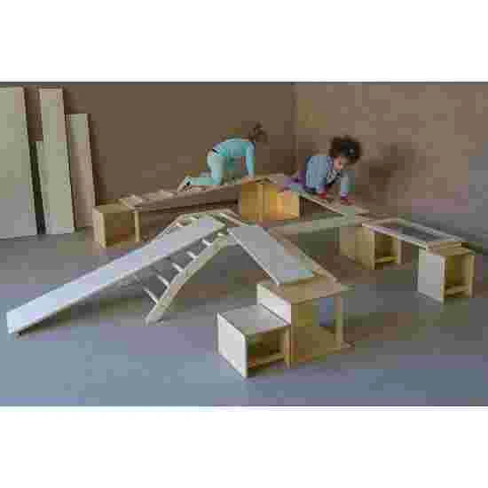 The “Crèche/U3” obstable course provides toddlers with everything that they need for a healthy development. The set is made up of different elements that allow new and versatile exercise areas to be built each time. The “Alfred” tunnel, for example, equipped with a plexiglass panel, encourages children to crawl through it, stand on it or pull themselves up on it. It can also be a place to simply relax. Developed in collaboration with educators.