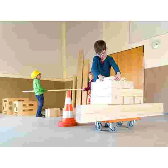 The Møte Fritid Nursery & School “Complete Set” of exercise course elements helps children between the ages of 4 and 12 develop psychomotor, social and personal skills. The set includes various solid, handmade elements produced using natural materials. These include: the “Basic” set, boards, blocks, beams and half rolls as well as a trolley for ease of storage. All of the elements are made of wood and the “Basic” elements feature Tretford carpet made of goat hair on the standing surfaces.