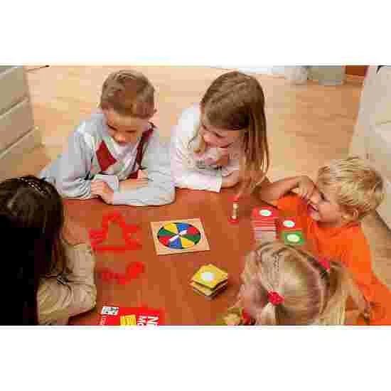 The Nikitin Creativo game is ideal for small groups in nurseries or use at home. The 160 cards contain pictures explaining ideas. One player has to recreate the concept using the wooden blocks, or by drawing it, describing it or acting it out. The other players have to guess it correctly before the sand runs down. The time limit adds to the excitement!