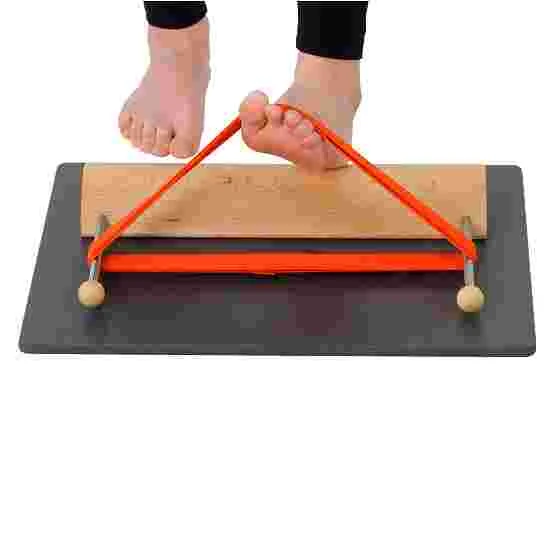 The Pedalo “S7 Forefoot Lifter” foot gym consists of a semi-circular wooden block and a holder for elastic bands, mounted on a sturdy base. The elastic bands come in 4 different resistance levels. Place your heel on the semi-circular wooden block and slide your toes under the elastic resistance band. Relax your leg and focus on lifting your forefoot, working your shin muscle. Keep your toes straight during the exercise, i.e. when raising and lowering your forefoot.
