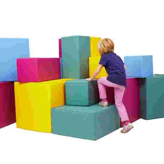 Impress children with imaginative and creative play with the Sport-Thieme giant cube – be it in nurseries, preschools, in children’s sport or in therapy. The giant cube with its 16 colourful cubes and cuboids have a highly stimulative nature. The individual blocks are made from durable foam (25/50 kg/m³). The skin-friendly, soft material cover (100% polychloride) is easy to clean.